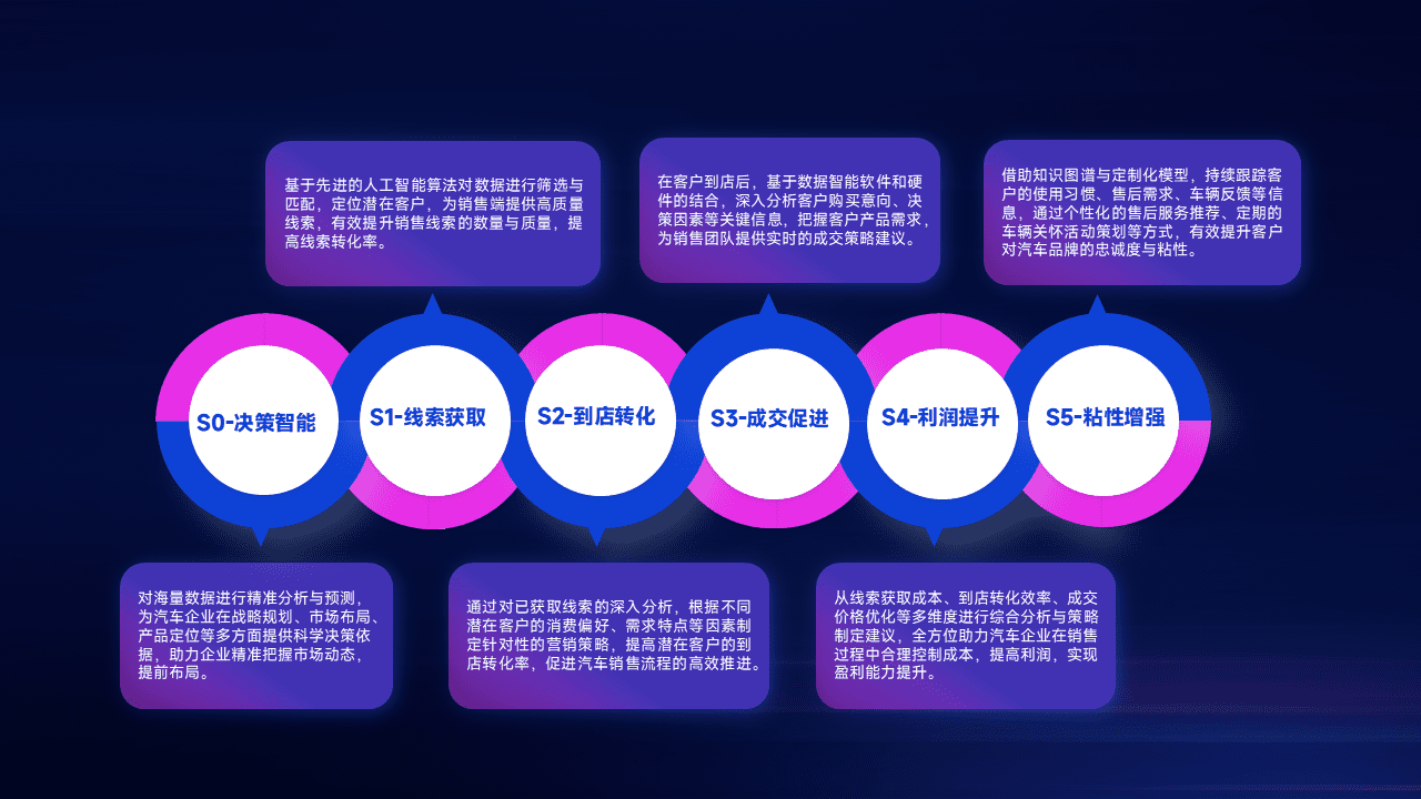 通过拓宽潜在客户来源、、、优化线索分配并提高到店转化率,,,,以增强销售效率。。。。同时,,,利用线索数据不断优化分析模型,,,有效提升转化率,,,,扩大营销影响力。。。